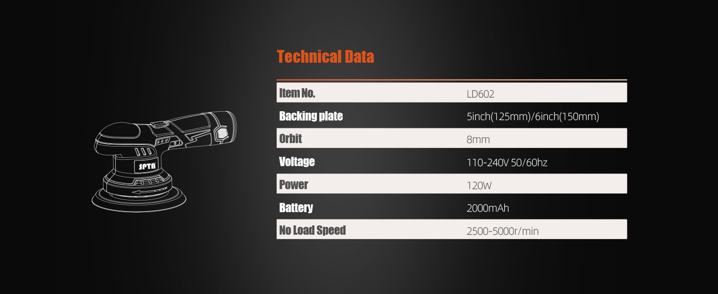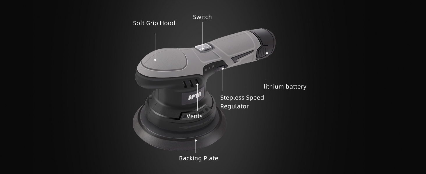 Dual Action Polisher-It can be used with buffing pads to clean and buff the paint. It has unique random orb ital model, has similar function with hand polishing (even better and more efficient th an hand polishing wax). It can reduce the damage furthest while waxing and polishin g, makes car care becomes easier and more funny.