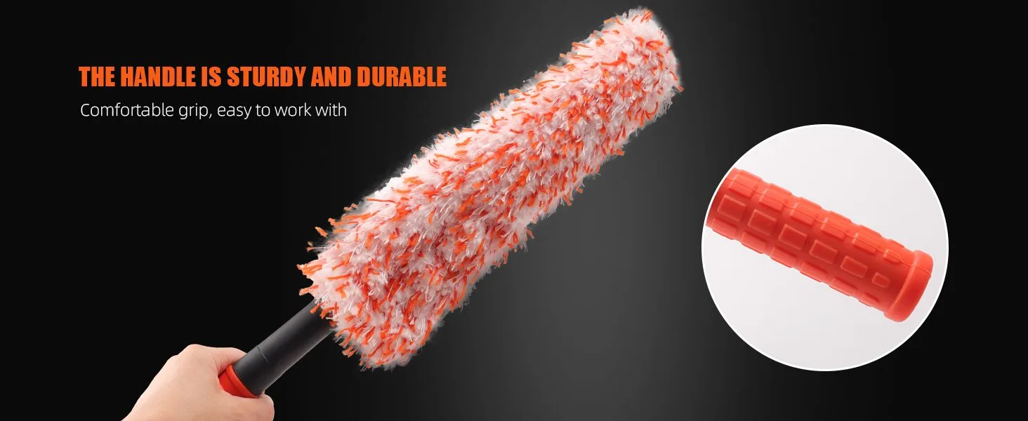 Sturdy and Gentle: The blade of this multifunctional tire rim brush is sturdy for excellent cleaning results, while the high-quality and soft microfiber brush cover prevents scratches, so you can clean with peace of mind.
