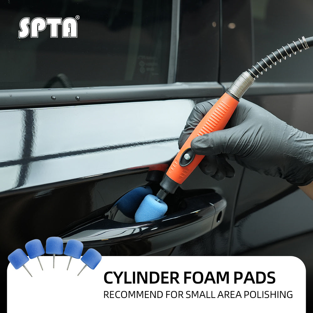 SPTA Mini Polishing Pads Set, 5Pcs Blue Flexible Shaft Cylinder Polishing Pad Set,Car Detailing Pads For Small Area for Flexible Shaft & Drill Attachment