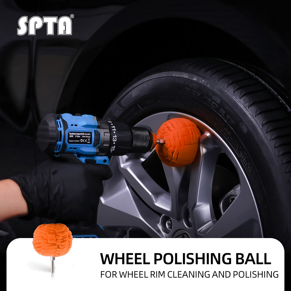• SPTA Orange Detailing Polishing Ball,Ball Buffing Polishing Pads 3 Inch Fine Cut Sponge Car Wheel Polishers Detail Polisher Tool ,Car Hub Polishing Sponge Pad with 1/4
