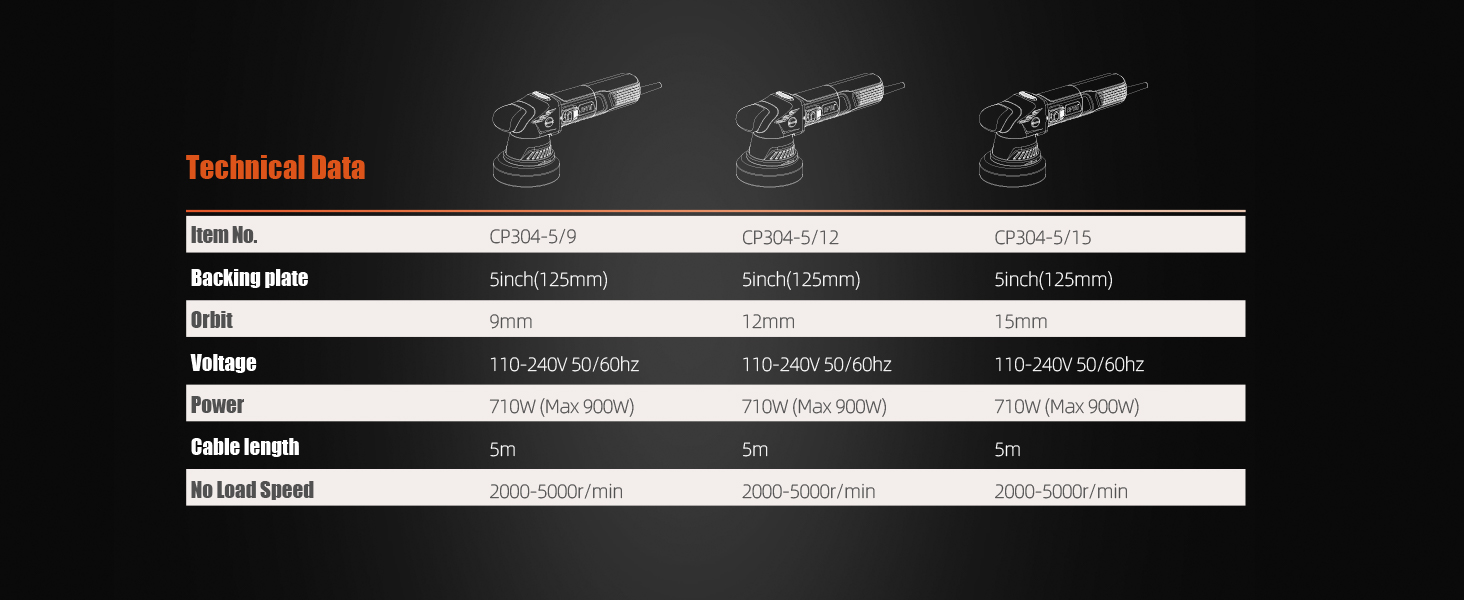 CP304 is a professional portable-type dual action polisher in the SPTA series. This machine is mainly used for partial area of the car and whole body polishing. 3 different orbital blocks to be chosen from freely;