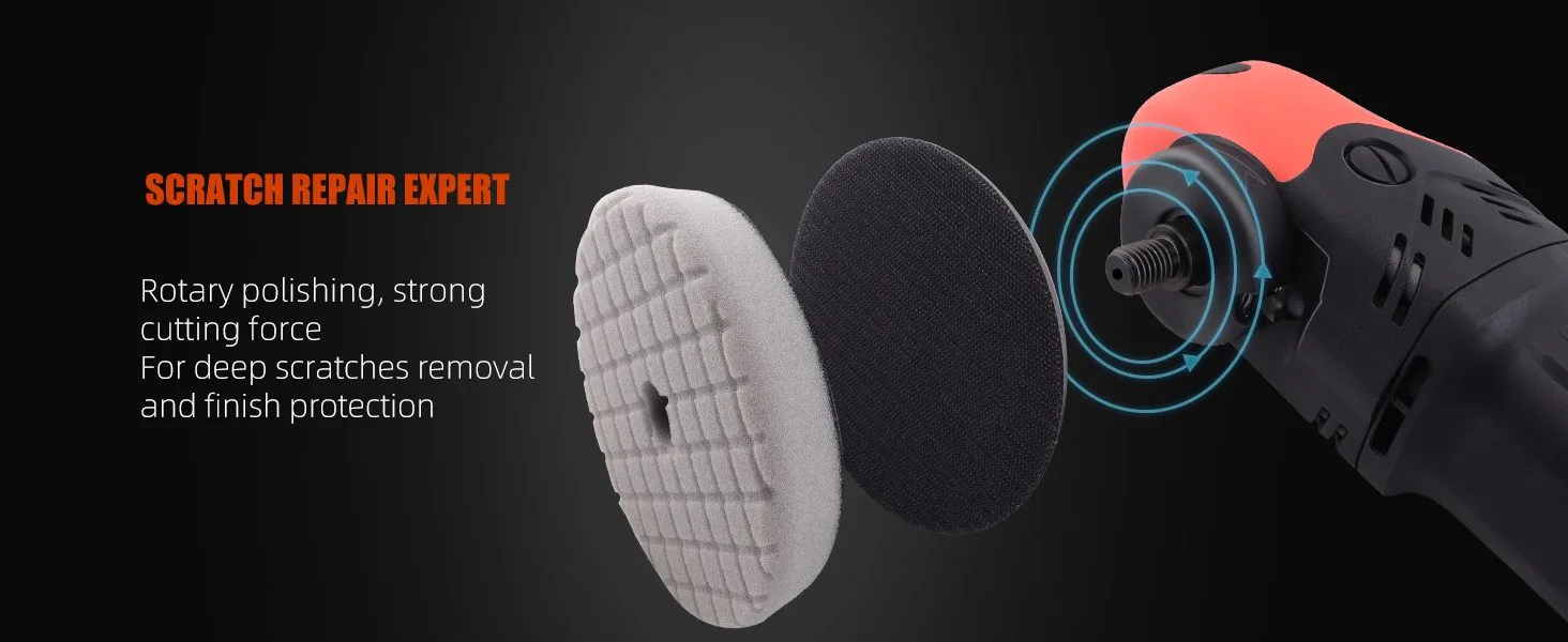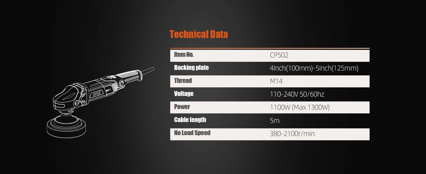 Features - Rated 1100W (Max.1380w) Power improved by 60%. High-precision CNC Technics for smooth polishing. Up to 2100r/min for greater polishing efficiency smooth polishing. Precise speed control system. Well balanced for smooth operation. Constant speed output under load. Ergonomic body design, 5-meter long power supply cord;