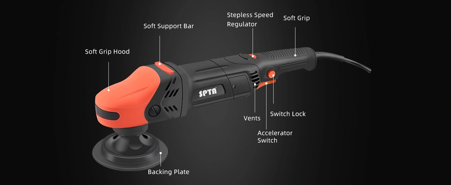 • SPTA CP502 1200W Rotary Polisher, 5-Meter Long Power Supply Cord, Constant Speed Control,Smooth Operation
