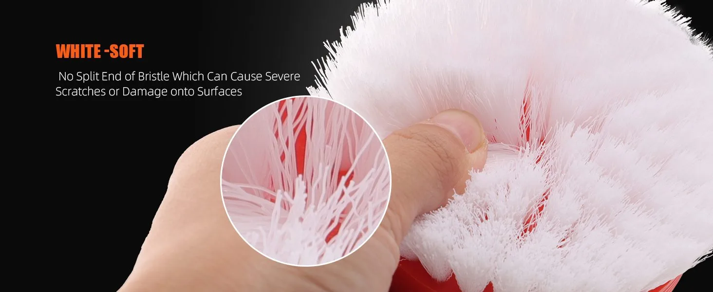 Usage:The orange and white brush head is soft and can quickly clean leather seats and door panels.