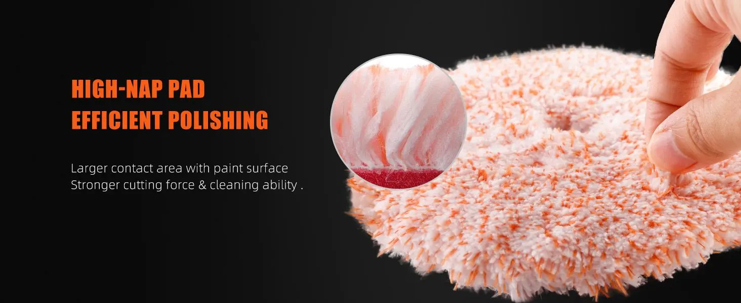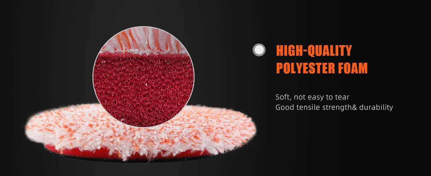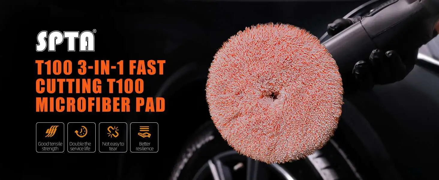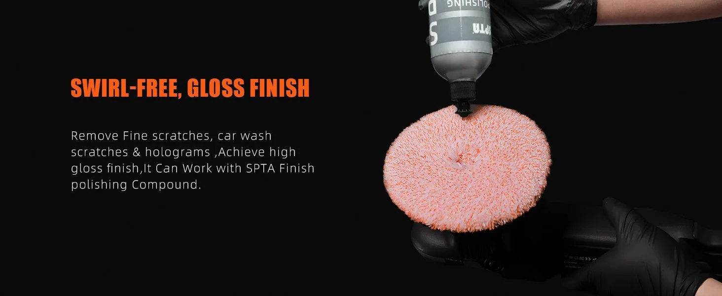 SUPERFINE MICROFIBER: SPTA Microfiber Polishing Pads are made of high quality superfine microfiber that can cut through tougher ceramic clear coats and softer one-step paints alike. The pads have comfortable hand feeling as well as high toughness.