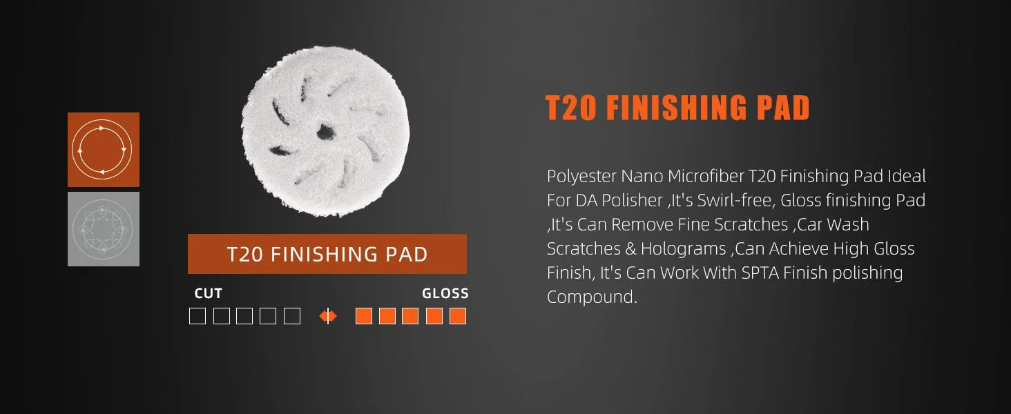 SUPERFINE MICROFIBER: SPTA Microfiber Polishing Pads are made of high quality superfine microfiber that can cut through tougher ceramic clear coats and softer one-step paints alike. The pads have comfortable hand feeling as well as high toughness.