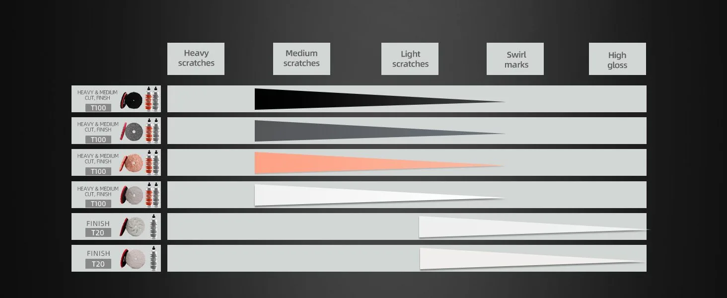 GOOD TO USE: SPTA microfiber pads can cut through moderate surface imperfections in OEM paint without leaving any more swirls. Ideal for removing common subsurface defects such as scratches, etches, stains, swirls and holograms while enhancing gloss depth.
