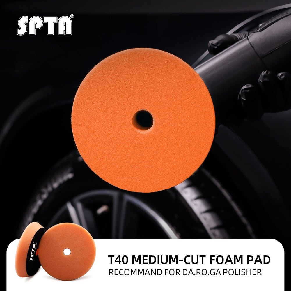 [Function] T40 Orange Medium-Cut Foam Pad Is Light Cutting Pad ,It's Can Remove 2000# Sanding Disc Marks ,Fine Scratches & Light Oxidation,It's Can Work With SPTA Medium Cut Polishing Compound , Ideal For Rotary And DA Car Polisher.
