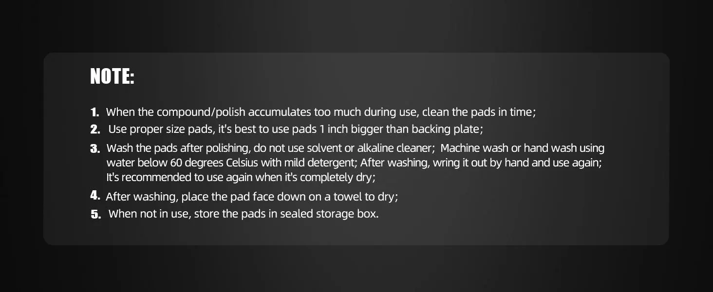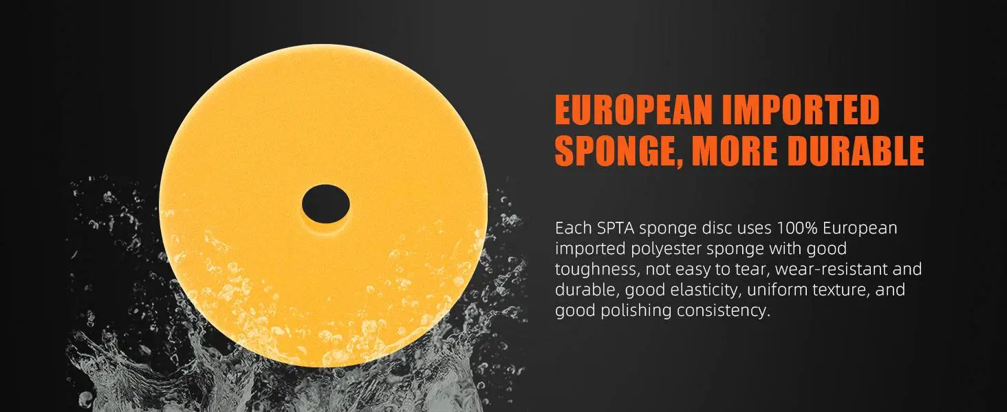 [Manufacturing technology] The sponge pad is light in weight and easy to assemble,washable and reusable.Suitable for waxing, polishing, sealing, cleaning, and improving brightness with various coatings. It can lock and retain the polishing compound to the maximum extent, preventing high-speed detachment.;