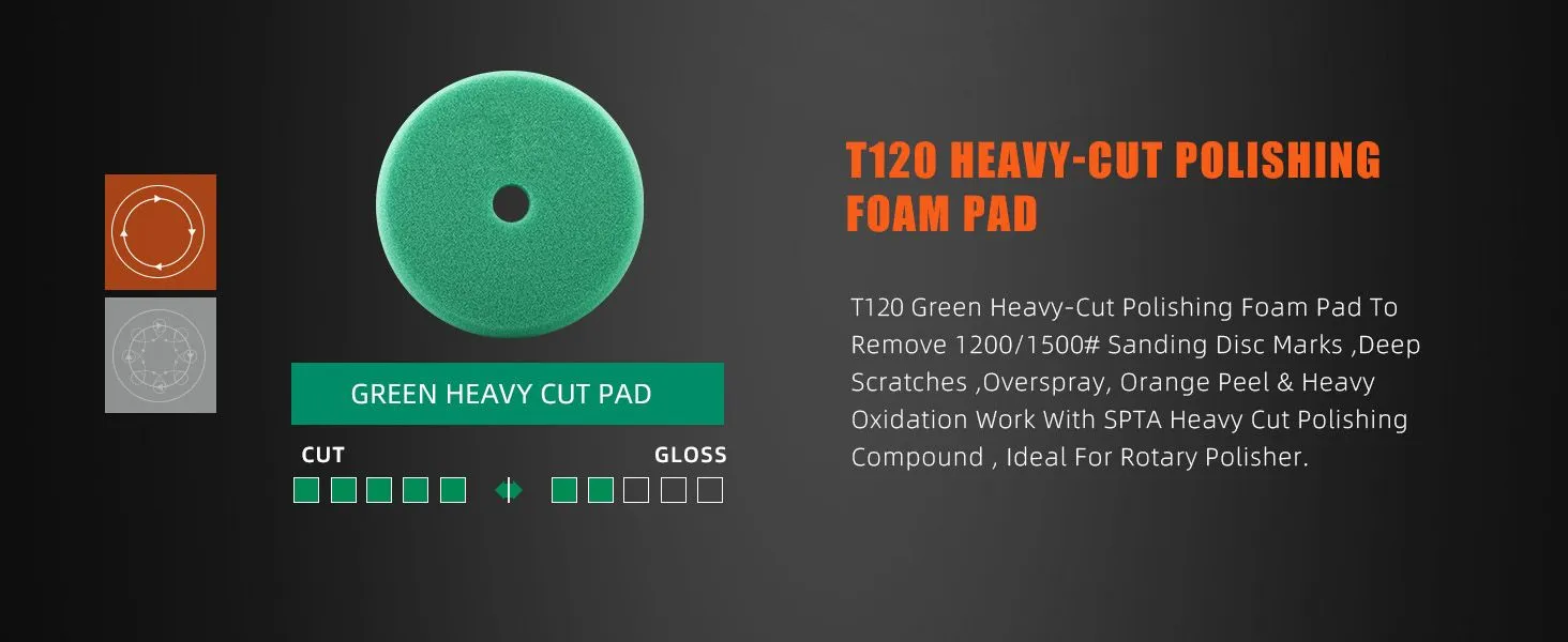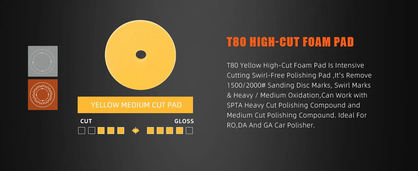 [Function] T80 High-Cut Foam Pad Is Intensive Cutting Swirl-Free Polishing Pad ,It's Remove 1500/2000# Sanding Disc Marks, Swirl Marks & Heavy / Medium Oxidation,Can Work with SPTA Heavy Cut Polishing Compound and Medium Cut Polishing Compound. Ideal For RO,DA And GA Car Polisher .