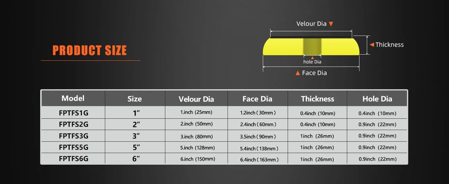 [Standard size] The diameter of the sponge is 3 inches/5 inches/6 inches (Select The Size You Want), and the bottom Velcro fasteners can prevent scratching and scorching of the sponge surface during the polishing process, reducing the wear and fasteners between the sponges, and improving product reliability.