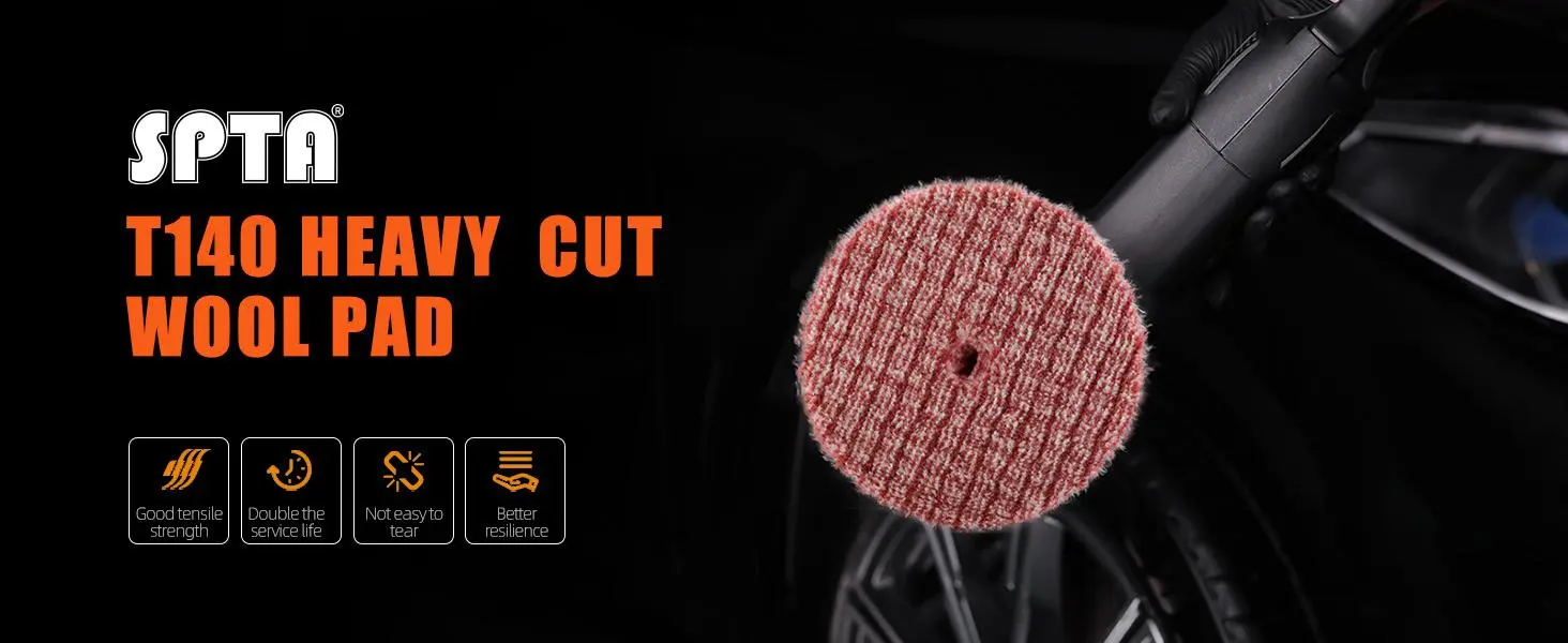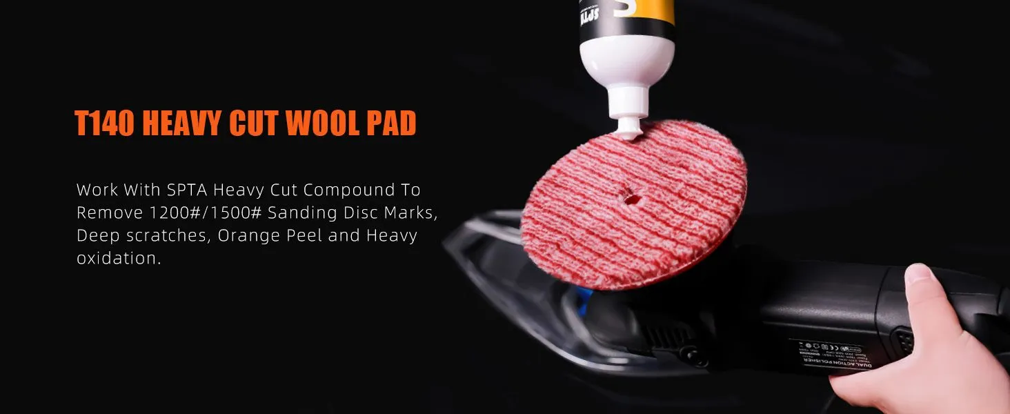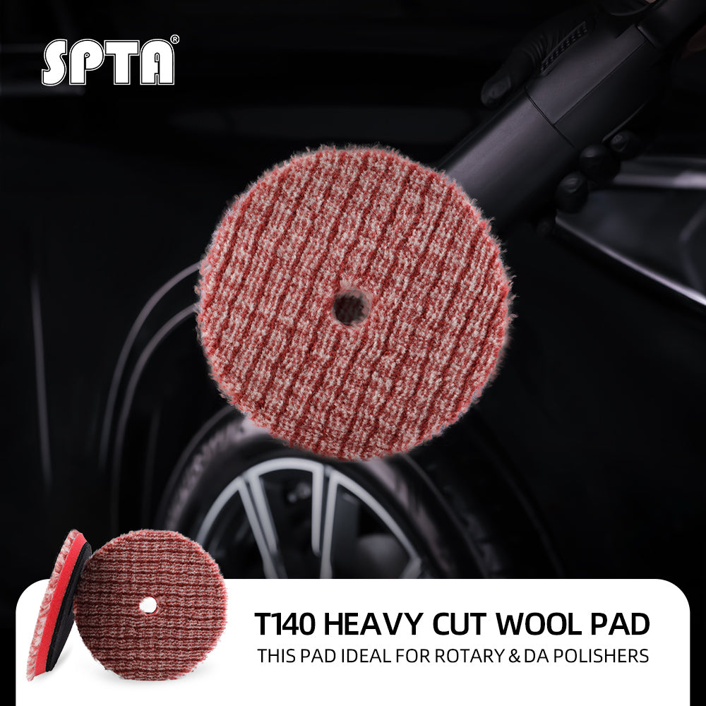 • SPTA 3 inch to 6 inch Wool Polishing Pad, T140 Red Heavy Cut Wool Pad to Remove 1200#/1500# Sanding Disc Marks, Deep Scratches, Orange Peel and Heavy Oxidation for Automotive, Car, RV, Motorbike & Boat