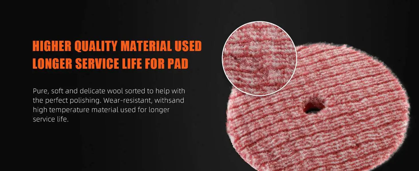 Functions:The wool polishing pad is good to remove 1200#/1500# sanding disc marks, deep scratches, orange peel and heavy oxidation.