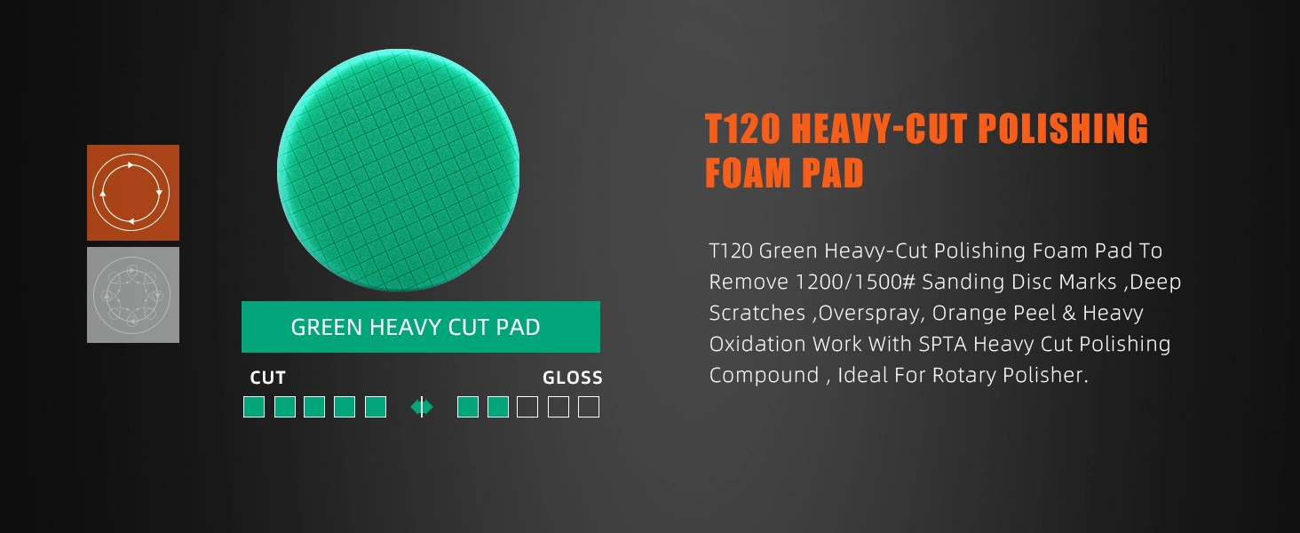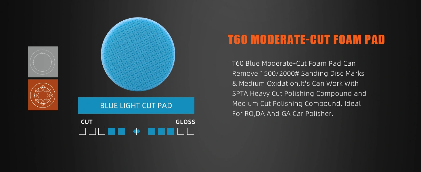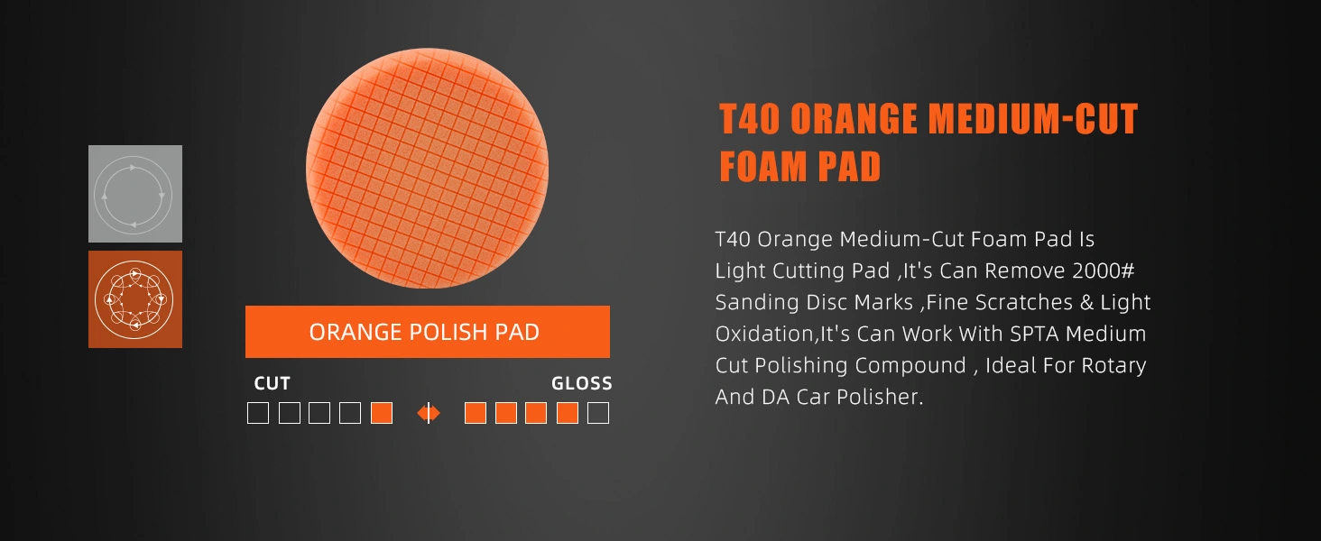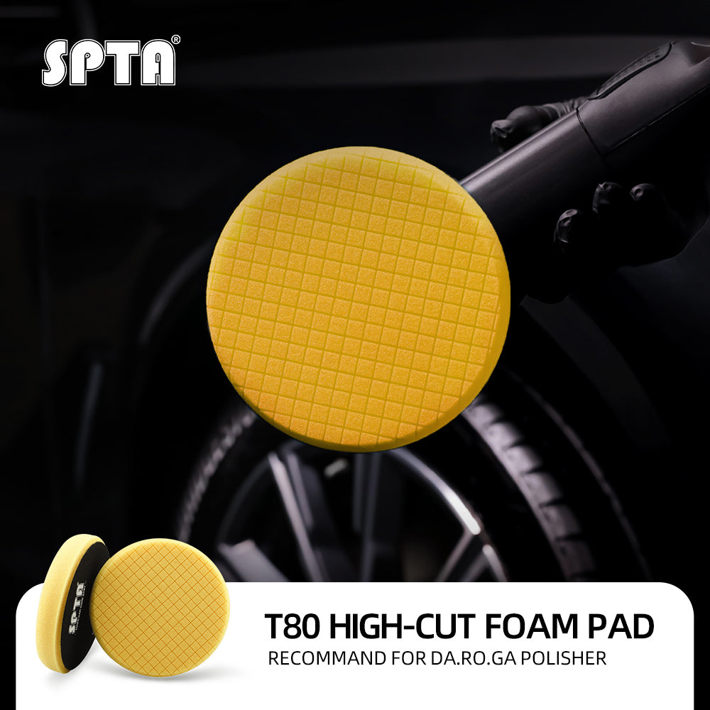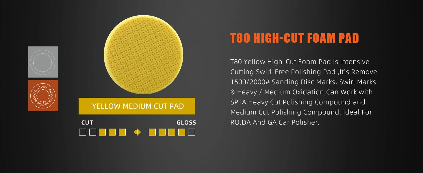 [Function] T80 High-Cut Foam Pad Is Intensive Cutting Swirl-Free Polishing Pad ,It's Remove 1500/2000# Sanding Disc Marks, Swirl Marks & Heavy / Medium Oxidation,Can Work with SPTA Heavy Cut Polishing Compound and Medium Cut Polishing Compound. Ideal For RO,DA And GA Car Polisher