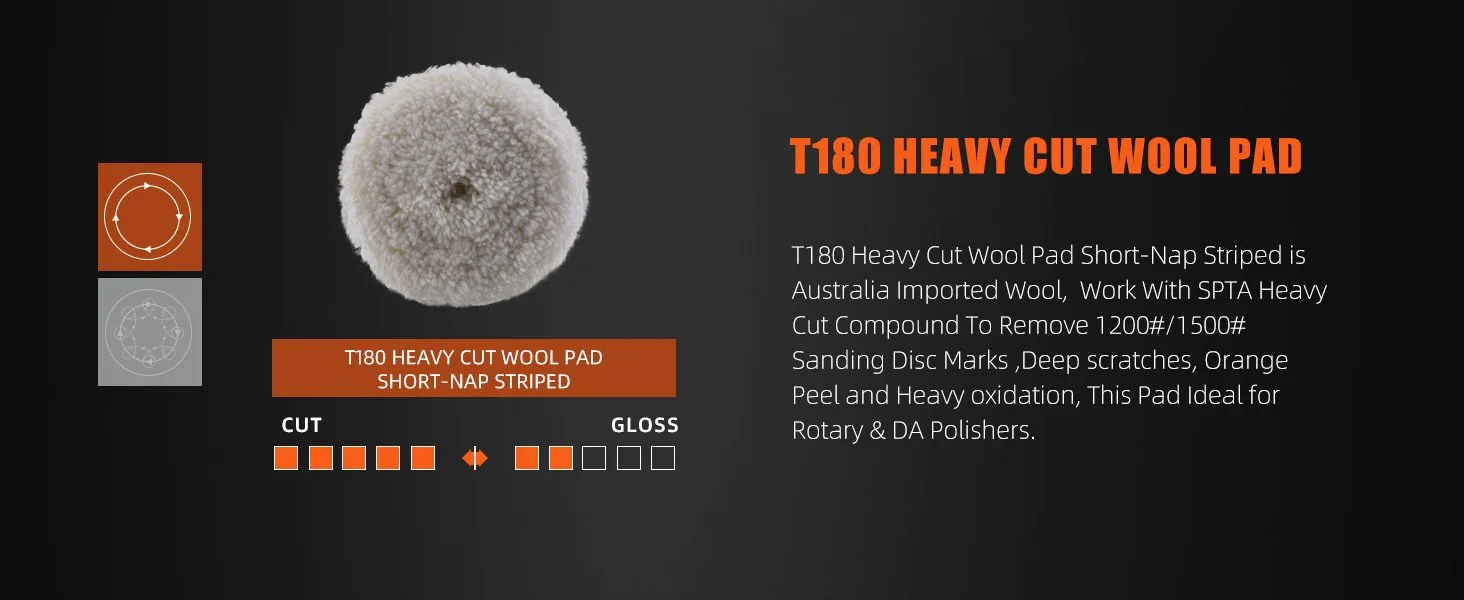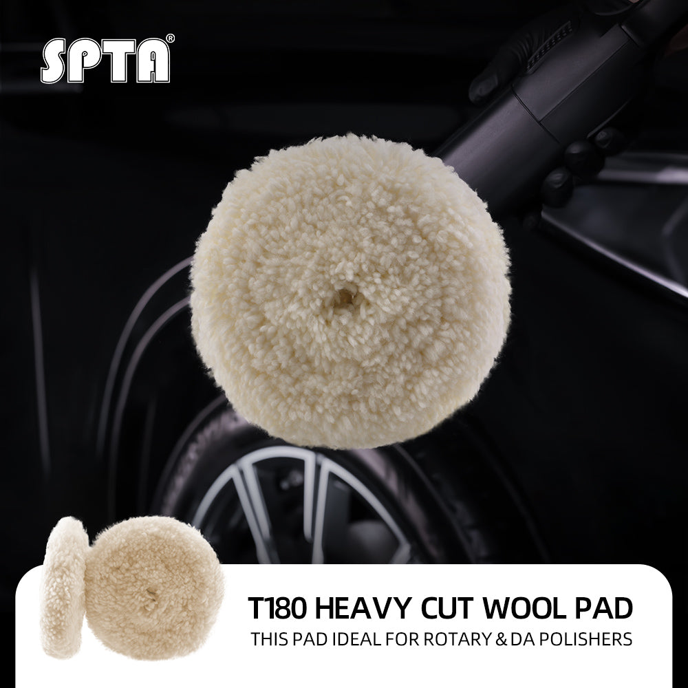 • SPTA 7 inch to 8 inch Wool Polishing Pad, T180 Double-Side Heavy Cut Wool Pad to Remove 1200#/1500# Sanding Disc Marks, Deep Scratches, Orange Peel and Heavy Oxidation for Automotive, Car, RV, Motorbike & Boat
