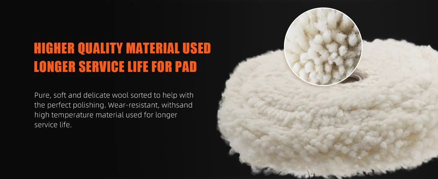 Functions:The wool polishing pad is good to remove 1200#/1500# sanding disc marks, deep scratches, orange peel and heavy oxidation.
