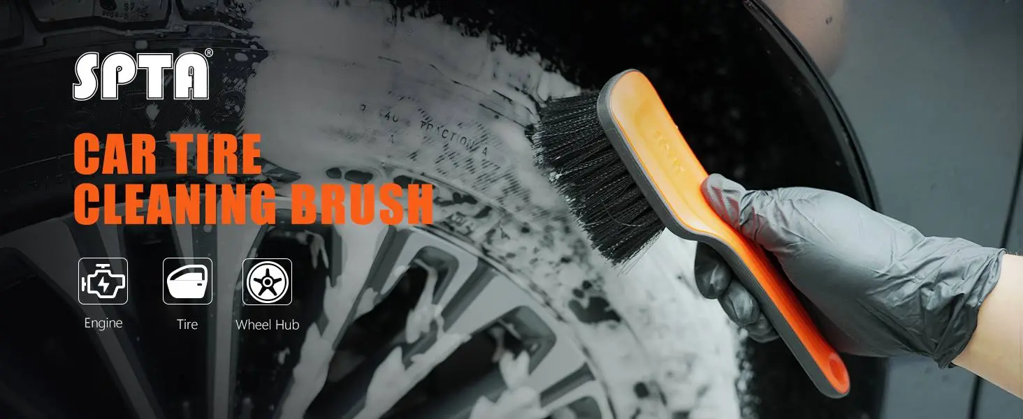 SPTA DF033 Black & Orange Car Tire Brush Made With PVC Bristle For Car Floor Mats Set Belt Scrubbing Tires Cleaning