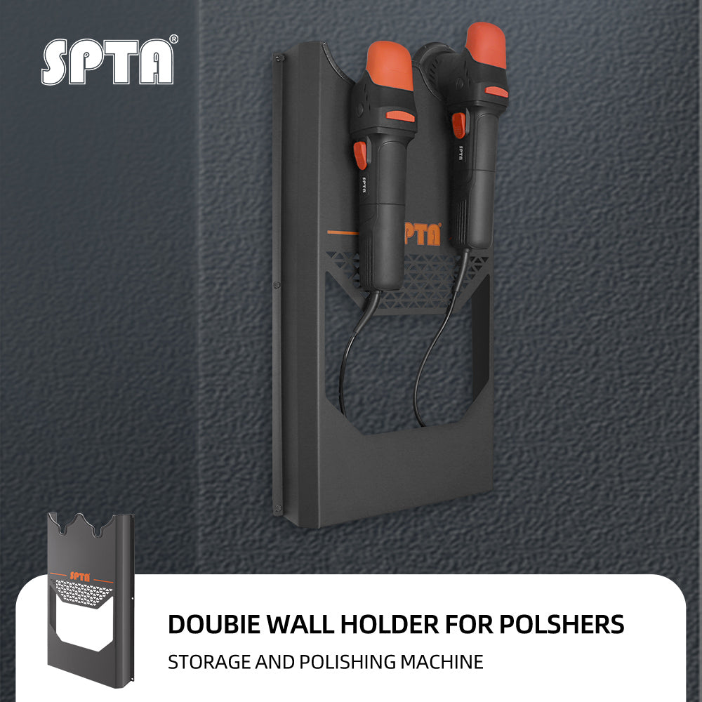 • SPTA Double Wall Holder for Polishers, Mounted Rack Organizer for Dual Action & Rotary Polishers,Car Polisher Holder, Double Station Polisher Machine Rack Wall Mount Polisher Holder, Premium Metal Car Detailing Holder/Hanger/Rack for Polishing Machine