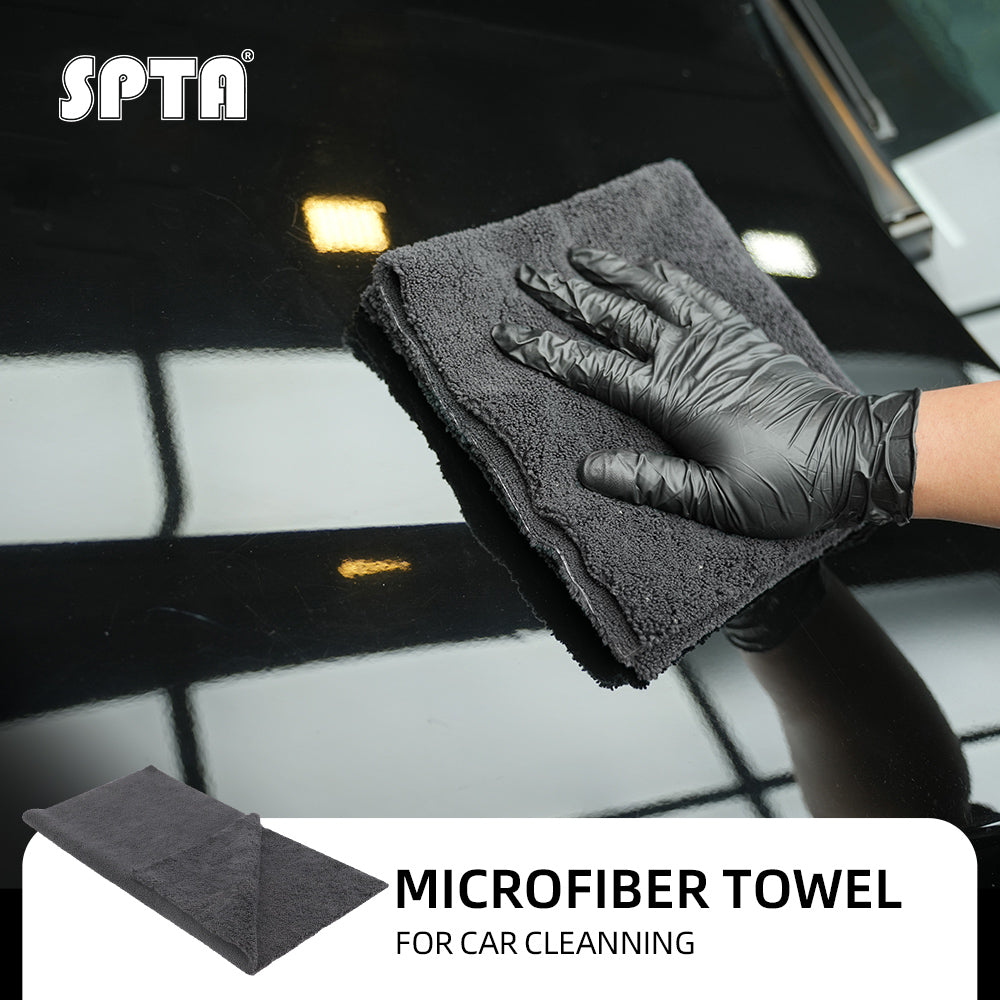 SPTA Grey Edgeless Auto Detailing Towels,420GSM All-Purpose Microfiber Terry Cleaning Towels Professional 70/30 Blend, Dual-Pile Plush Microfiber, Buffing & Polishing