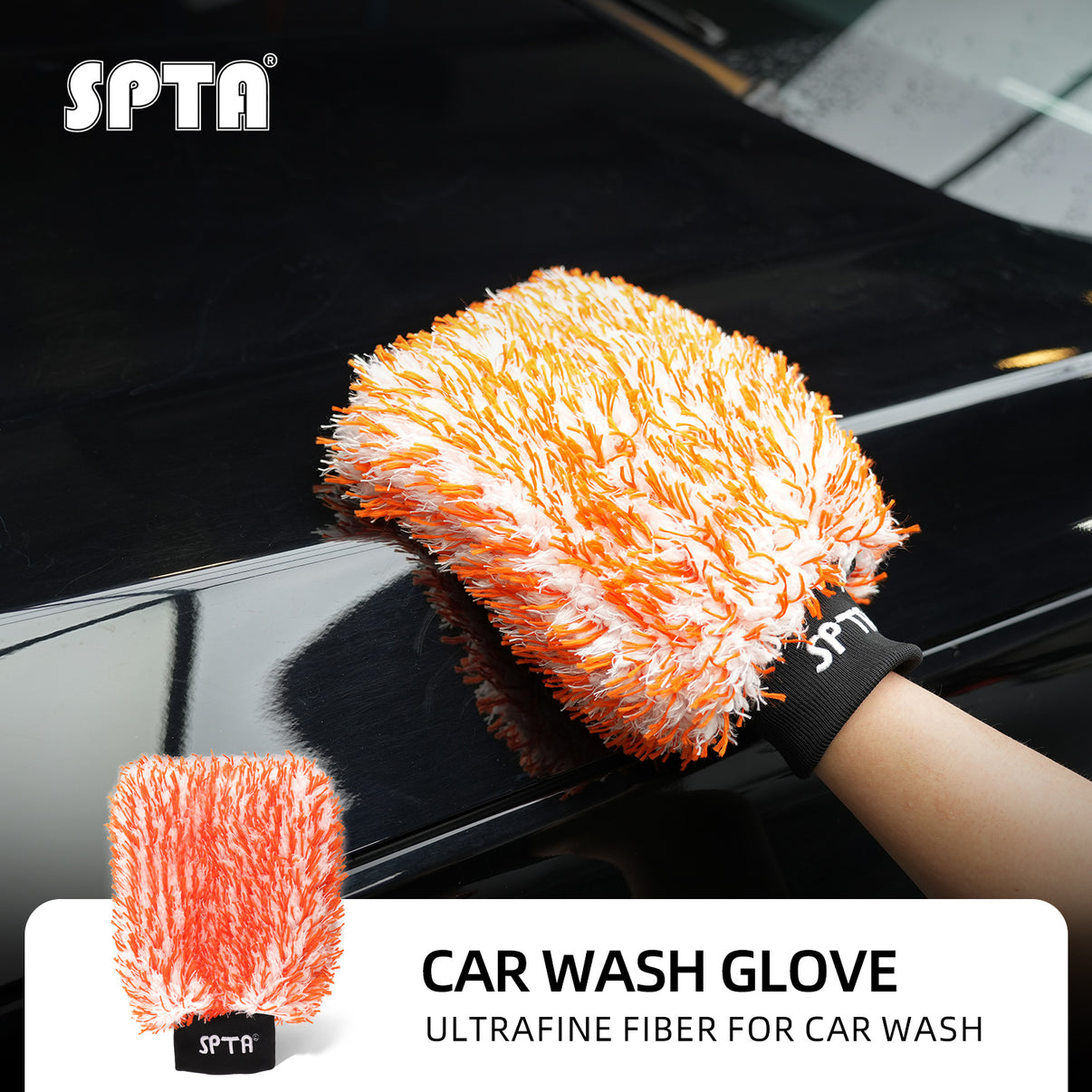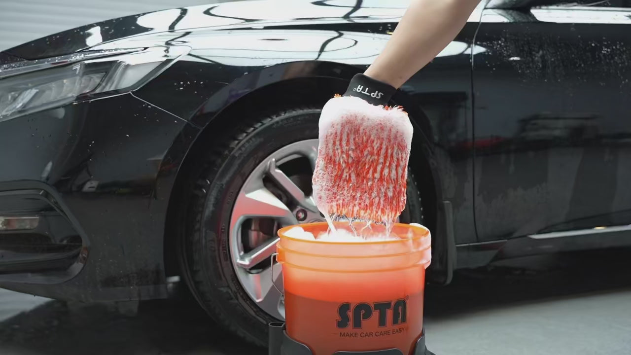 SPTA Microfiber Car Wash Mitt, Orange Sponge Glove Wrapped in Soft, Plush Fiber Cloth Material, Safe Washing with Any Soap, Bucket, Foam Gun, Foam Cannon, Other Cleaning Supplies