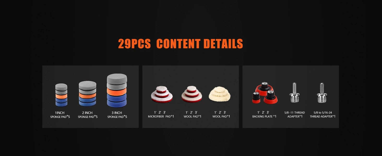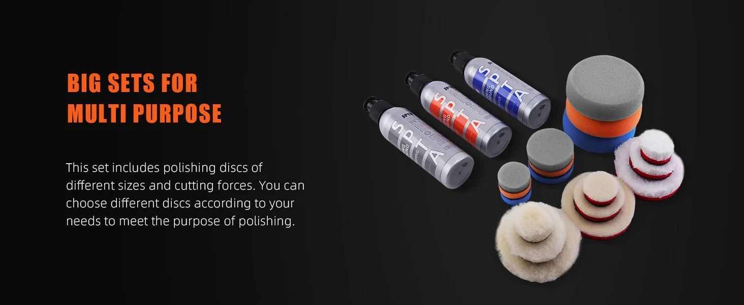 Specifics:Prime quality wool pad, sponge pad, bendable, washable and reusable. Different colored sponges have different softness,suitable for polishing rough and small areas. With Adhesive backing, you can change pads just in seconds.