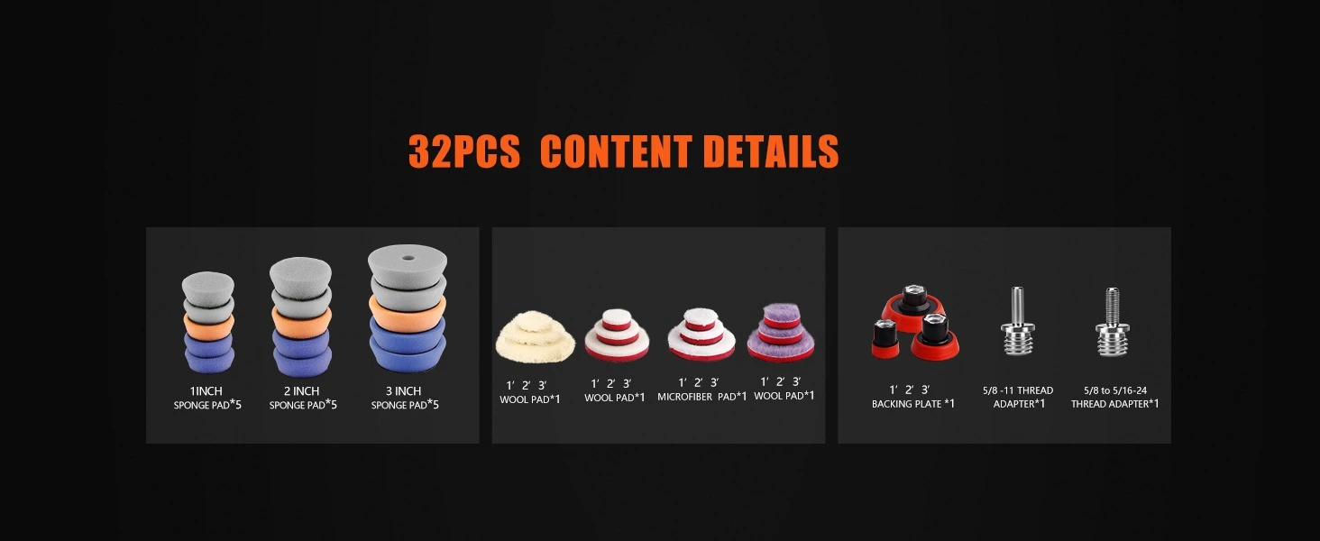 ◆Specifics◆ Prime quality wool pad, sponge pad, bendable, washable and reusable. Different colored sponges have different softness,suitable for polishing rough and small areas. With Adhesive backing, you can change pads just in seconds.